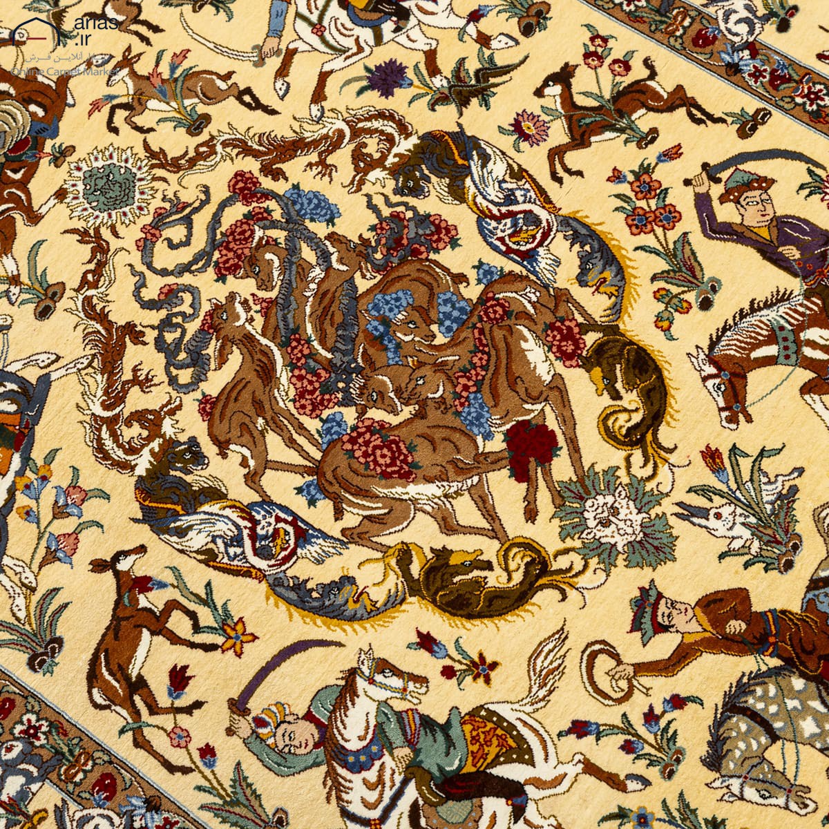• سجادة إيرانية يدوية (ذرع ونصف) نصف حرير، أرضية زرشية، نقشة الصيد – ماركة نوزاد € 3.080,00 Original price was: € 3.080,00.€ 2.660,00Current price is: € 2.660,00.تخته